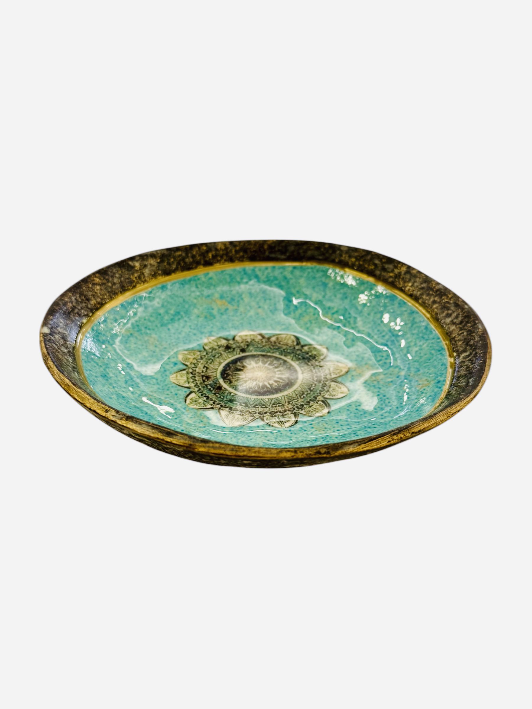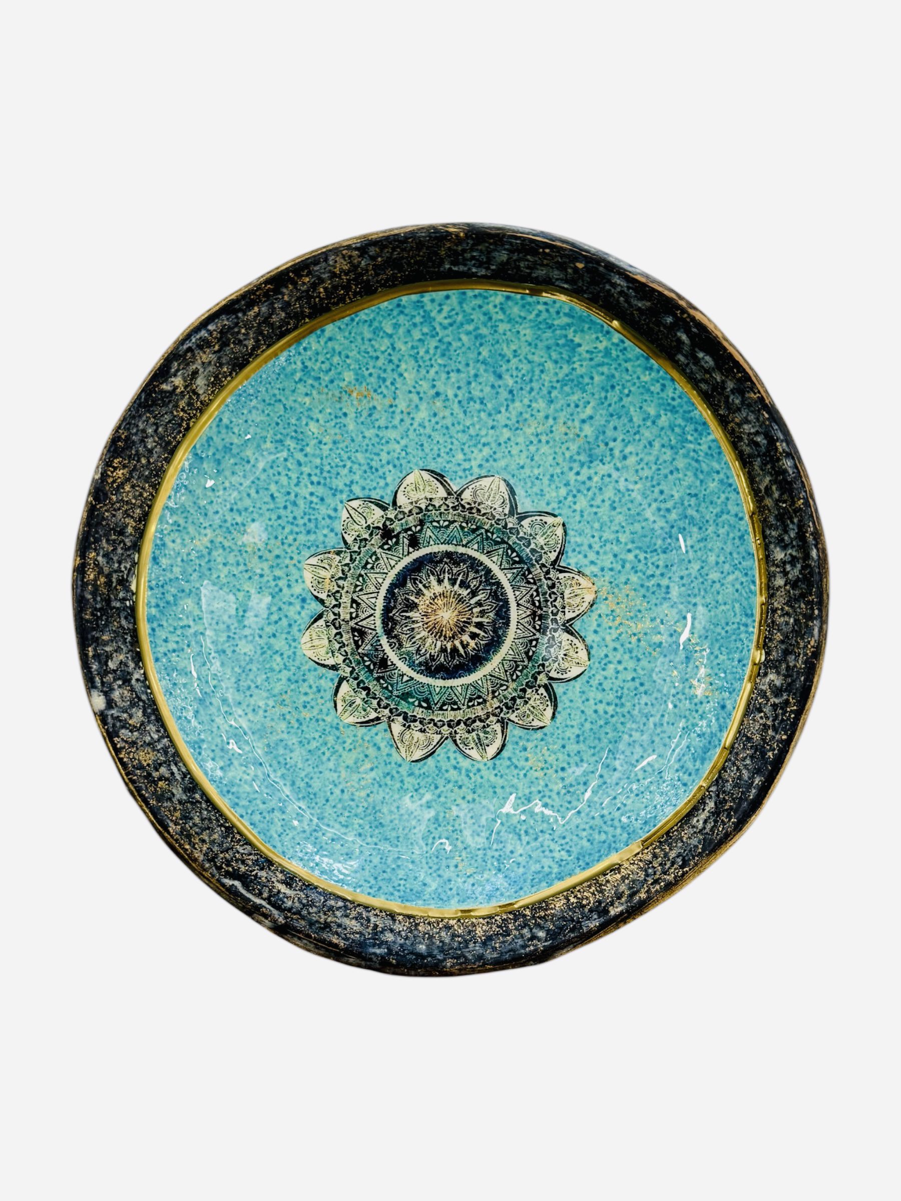 handmade ceramic plate mandala made of ceramic clay and pumice from the sea which makes it lighter than other ceramics. special and unique to decorate your space with something different from the usual products.